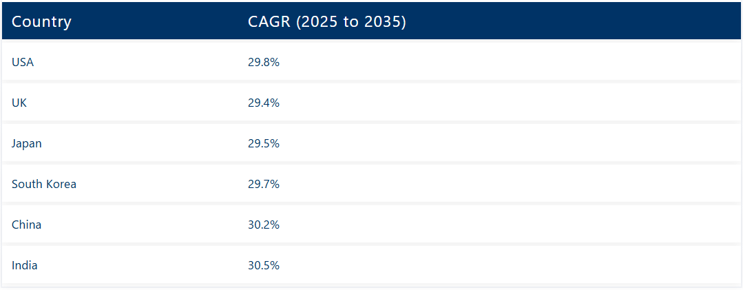 米国は29.8%で続き、インフレ抑制法の優遇措置、テスラの市場リーダーシップ、伝統的自動車メーカーの電動化への取り組みが支えとなっている。韓国は29.7%の成長率を示し、先進的なパワーエレクトロニクス技術と強力な国内自動車メーカープログラムに注力している。欧州連合(EU)と英国は、厳しい排出規制と包括的な充電インフラにより、それぞれ29.6%と29.4%の成長を記録している。