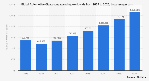 材料科学と3Dプリンティングの革新により、高精度で軽量かつ耐久性の高い自動車部品の生産が可能になりつつあります。これらの進歩により、生産が合理化され、廃棄物が削減され、自動車の性能が向上します。ギガキャスティング技術の使用は、軽量化と効率の最大化が重要な目標である電気自動車にとって特に魅力的です。さらに、自動化やAIを活用した鋳造技術の開発は、製造工程に革命をもたらすと期待されています。研究開発に投資する企業は、この市場で競争力を獲得する可能性が高いでしょう。
