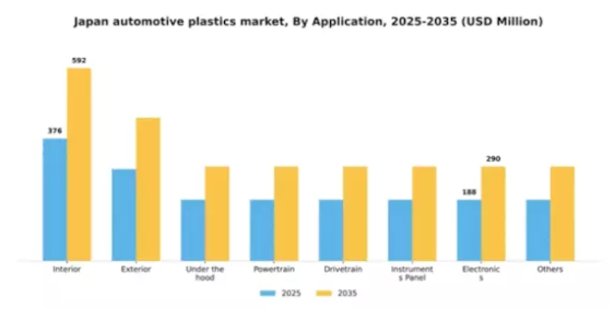 - 日本自動車用プラスチック市場、用途別(10億米ドル)