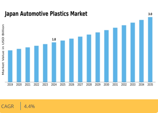 軽量材料の進歩と持続可能性イニシアチブに牽引され、日本の自動車用プラスチック市場は2024年から2035年にかけて年平均成長率(CAGR)4.4%で成長すると予測されている。