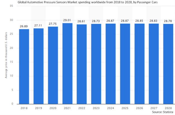 アディティブ・マニュファクチャリング(積層造形)、フレキシブル・エレクトロニクス、ナノテクノロジーなどの材料、センサー・アーキテクチャ、製造プロセスの開発が進んでいるため、よりコンパクトで堅牢、エネルギー効率の高い次世代の圧力センサーが可能になっています。部品点数を削減し、システムの信頼性を高めることができる多機能センサーは、グラフェンベースの材料、ピエゾ抵抗および静電容量センシング素子、温度/湿度検出とのセンサーフュージョンなどの技術革新によって可能になります。高性能スポーツカー、水素燃料電池車、超小型の都市型モビリティ・ソリューションなどの特殊な用途に適したセンサを製造できるようになるこうした技術的進歩により、メーカーの対応可能な市場は拡大します。