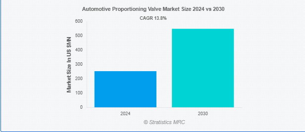 Stratistics MRCによると、自動車用プロポーショニングバルブの世界市場は2024年に2億5,266万ドルを占め、2030年には5億4,877万ドルに達すると予測され、予測期間中の年平均成長率は13.8%です。自動車用プロポーショニングバルブは、フロントブレーキとリアブレーキの間でバランスの取れたブレーキ圧力配分を保証する、自動車のブレーキシステムにおける重要なコンポーネントです。このバルブは、リアブレーキにかかる圧力を調整することでブレーキ性能を最適化し、特にリアドラムブレーキを搭載した車両の早期ロックアップやトラクションの低下を防ぎます。このバルブは通常、フロントがディスクブレーキ、リアがドラムブレーキの車両に使用され、特に荷重条件が変化するブレーキング時の安定性、制御性、安全性を向上させます。