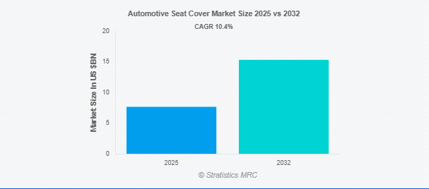 Stratistics MRCによると、自動車用シートカバーの世界市場は2025年に76.7億ドルを占め、予測期間中の年平均成長率は10.4%で、2032年には153.4億ドルに達する見込みです。自動車シートカバーは、自動車のシートにフィットするように設計された保護アクセサリーです。シートカバーには様々な素材があり、シートカバーの種類も様々です。自動車用シートカバーには、ファブリック、レザー、ネオプレンなどさまざまな素材があり、多くの場合、車のインテリアデザインに合わせてカスタマイズでき、実用性と美観の両方を提供します。