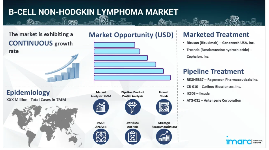 B細胞性非ホジキンリンパ腫市場は、IMARCの新報告書『B細胞性非ホジキンリンパ腫市場規模、疫学、市場内医薬品売上高、パイプライン治療法、および地域別展望 2025-2035年』において包括的に分析されております。