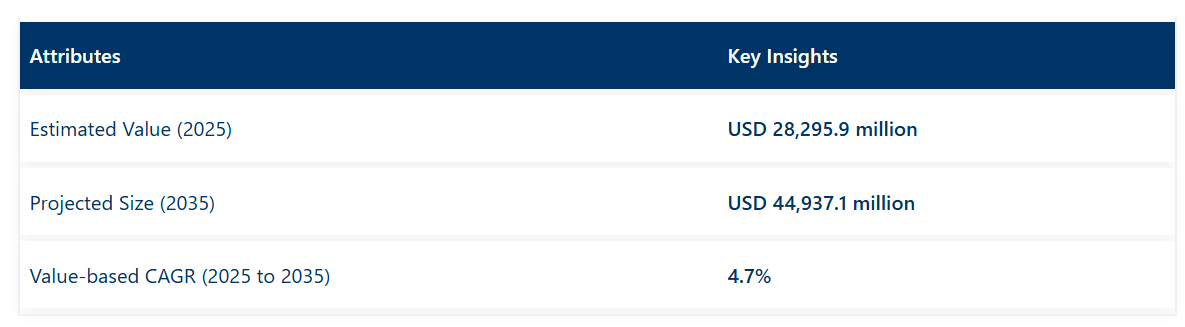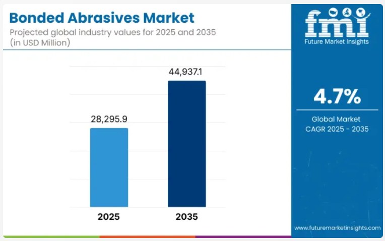 世界の結合研磨材市場は、2025年の282億9,590万米ドルから2035年までに449億3,710万米ドルへと拡大し、予測期間中の年平均成長率(CAGR)は4.7%と予測されております。