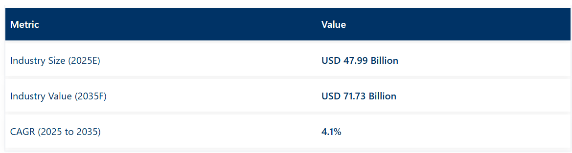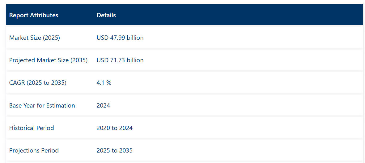 世界の朝食用シリアル市場は、2025年に479億9,000万米ドルと評価され、2035年までに717億3,000万米ドルに達すると予測されており、年平均成長率(CAGR)4.1%で拡大しています。