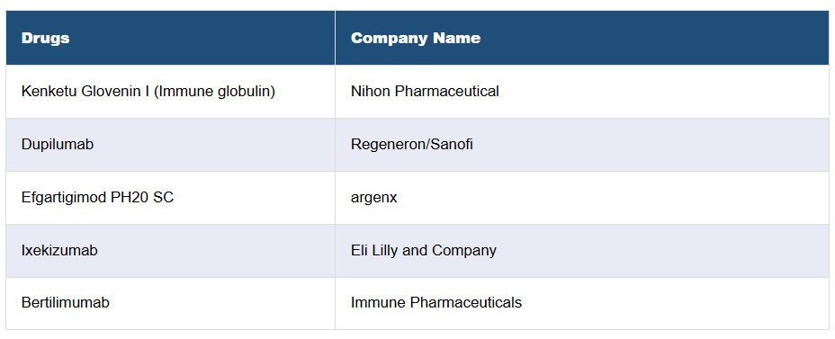 13. 水疱性類天疱瘡 – 主な市販薬および開発中の薬剤の属性分析