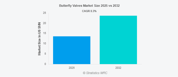 Stratistics MRCによると、バタフライバルブの世界市場は2025年に136億ドルを占め、予測期間中の年平均成長率は8.3%で、2032年には237億ドルに達する見込みです。バタフライバルブは、回転ディスクを使用してパイプライン内の流体の動きを調整する流量制御装置です。パイプラインの中心に配置され、ディスクはスピンドル上で回転し、流れを許容または制限し、効率的で正確な制御を提供します。バタフライバルブは、そのコンパクトな設計と低圧力降下により、水処理、石油・ガス、化学処理、HVACシステムで広く使用されています。軽量構造でコスト効率が高いため、迅速なシャットオフや絞り機能を必要とする用途に最適です。