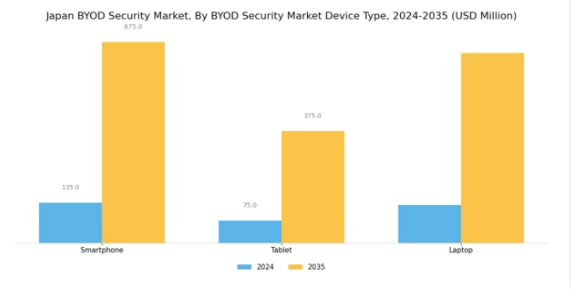 BYODセキュリティ市場は現在、顕著な成長を遂げています。これは、様々な業界の職場におけるモバイルデバイスの採用増加に牽引されています。組織は、個人デバイスを通じてアクセスされる機密データを保護する必要性を認識しており、堅牢なセキュリティソリューションへの需要が急増しています。この傾向は特に日本で顕著であり、企業はデータ侵害や不正アクセスに関連するリスクを軽減するため、包括的なセキュリティポリシーの実施を優先しています。モバイル技術の進化に伴い、これらのデバイスを保護する複雑性も増しており、企業は高度なセキュリティ対策への投資を迫られている。さらに、日本では規制環境が変化し、より厳格なデータ保護法が導入されている。この規制圧力により、組織は資産を保護しつつコンプライアンスを確保するため、セキュリティフレームワークの強化を余儀なくされている。従業員のプライバシーとデータ完全性への重視がBYODセキュリティ市場を再構築しており、企業は業務効率と厳格なセキュリティ要件のバランスを図ろうとしている。その結果、職場環境における個人デバイスの普及がもたらす特有の課題に対応するため、暗号化、モバイルデバイス管理、脅威検知システムなどのセキュリティ技術における革新が市場で目撃される可能性が高い。