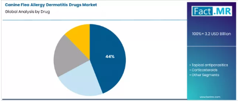 この疾患の管理には、徹底したノミ駆除と、そう痒症や皮膚病変に対する治療的介入を組み合わせた二重のアプローチが必要であり、これにより、駆虫剤と抗炎症薬の両方において持続的な市場が形成されています。ペットオーナーのアレルギー性皮膚疾患に対する意識の高まりと、獣医皮膚科への支出増加が、市場拡大を支える主要な要因となっています。