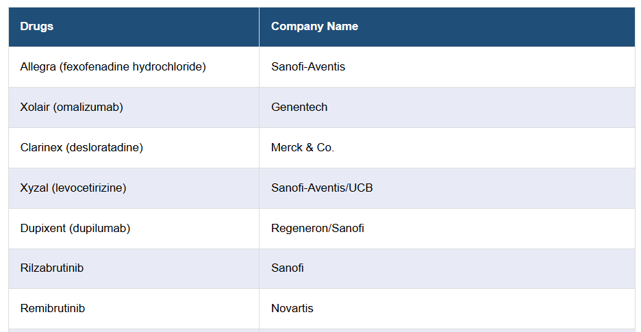 本レポートでは、現在市場流通中の慢性蕁麻疹治療薬および後期開発段階のパイプライン薬剤についても詳細な分析を提供しております。