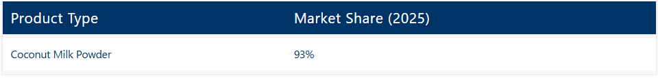 ココナッツミルクパウダーセグメントは93%という圧倒的な市場シェアを占めており、2025年から2035年にかけても成長を牽引し続けると予想される。この優位性は、幅広い食品・飲料用途において、保存性が高く使いやすいココナッツミルク代替品に対する消費者需要の高まりによって支えられている。