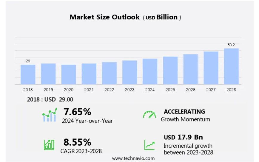 市場調査レポートは、以下のセグメントについて、2024年から2028年の期間における「10億米ドル」単位での予測と推定、および2018年から2022年の期間における過去のデータを含む包括的なデータ(地域別セグメント分析)を提供しています。