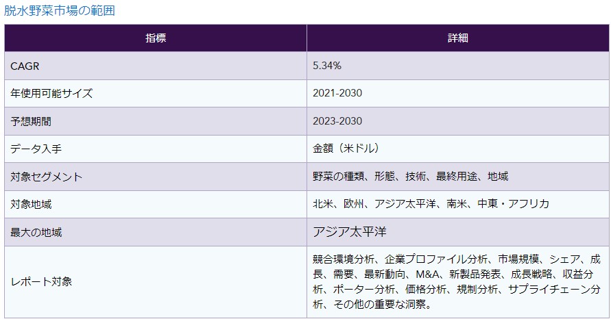 脱水野菜の市場ダイナミクス