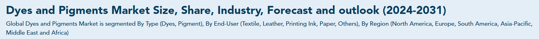 - 繊維産業の成長も、染料・顔料市場が近い将来増殖するための絶大な機会を生み出す要因の一つです。