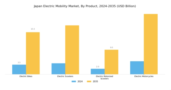 日本における電動モビリティ市場は、企業がカーボンフットプリント削減の重要性を認識するにつれ、企業のサステナビリティ施策の影響をますます強く受けている。多くの企業が環境目標に沿うため電動車両を導入しており、これが電気自動車の需要を牽引する見込みだ。最近の報告書によれば、2026年までに電気自動車への移行を計画している日本企業は40%を超える。この傾向は環境にとって有益であるだけでなく、企業イメージと競争力の向上にも寄与する。さらに、自動車メーカーと企業間の提携が生まれ、カスタマイズされた電動モビリティソリューションの開発が進んでいます。企業が持続可能な取り組みに投資するにつれ、電動モビリティ市場は拡大し、社会全体の持続可能性への移行を反映すると予想されます。