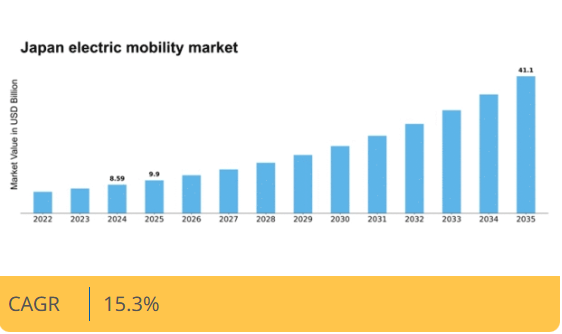 日本の電動モビリティ市場は、技術進歩、政府のインセンティブ、消費者需要の増加を背景に、2024年から2035年にかけて年平均成長率(CAGR)15.3%で成長すると予測される。