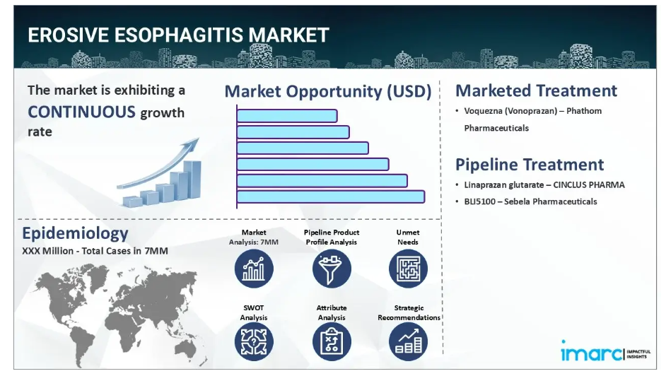 侵食性食道炎市場は、IMARCの新報告書「侵食性食道炎市場規模、疫学、市場内医薬品売上高、開発中の治療法、および地域別展望 2025-2035」において包括的に分析されております。