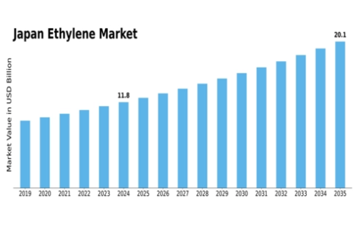 日本のエチレン市場は、2024年の118億米ドルから2035年までに201億米ドルへ成長すると予測されており、堅調な成長軌道を示している。