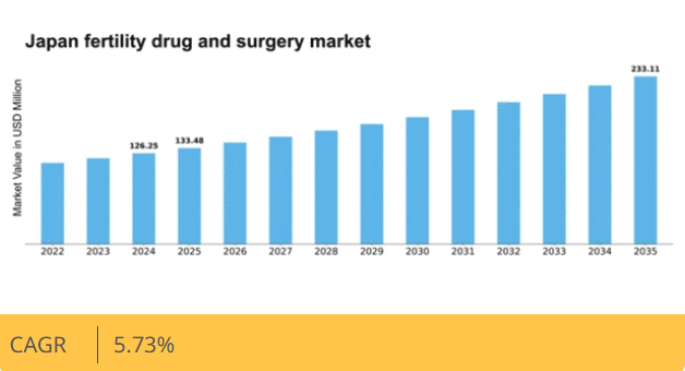 マーケットリサーチフューチャーの分析によると、日本の不妊治療薬・手術市場規模は2024年に1億2625万米ドルと推定された。日本の不妊治療薬・手術市場は、2025年の1億3348万米ドルから2035年までに2億3311万米ドルへ成長し、予測期間(2025年~2035年)において年平均成長率(CAGR)5.7%を示すと予測されている。
