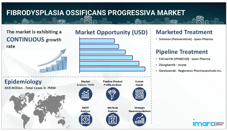IMARC Groupの新報告書は、米国、EU4(ドイツ、スペイン、イタリア、フランス)、英国、日本における進行性骨化性線維異形成症市場について包括的な分析を提供します。これには、治療実践、市場流通中および開発中の薬剤、個別療法のシェア、主要7市場における市場動向、主要企業とその薬剤の市場実績などが含まれます。本レポートでは、7つの主要市場における現在および将来の患者数についても提示しております。