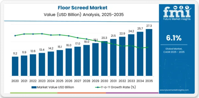 床用スクリードシステムは、建設業者にとって不可欠な建材であり、従来の砂セメントスクリードと比較して40~50%の施工時間短縮を実現。住宅・商業・工業建築用途において、優れた床面平坦性、断熱性能、実証済みの耐久性を提供する。市場規模は2025年の151億米ドルから2035年までに273億米ドルへ、年平均成長率(CAGR)6.1%で拡大すると予測される。これらの重要な床下地システムは、迅速な施工、断熱効率、優れた仕上げ品質という圧倒的な利点を提供し、住宅建設(市場シェア49.6%)、商業開発(同34.1%)、および従来手法では効率的に実現できない床下地処理を必要とする建築プロジェクトにおいて不可欠な存在となっています。