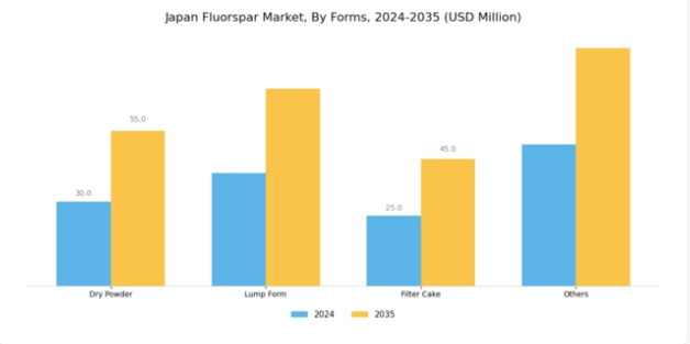 - 日本の蛍石市場規模予測(形態別、2019-2035年、10億米ドル)