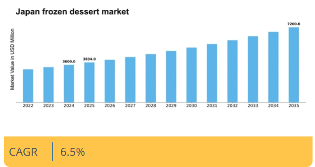日本の冷凍デザート市場は、イノベーション、健康志向、プレミアム化を原動力として、2025年から2035年にかけて年平均成長率(CAGR)6.5%で成長すると予測されています。