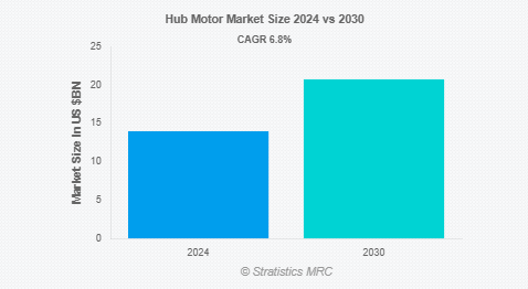 Stratistics MRCによると、ハブモーターの世界市場は2024年に139.8億ドルを占め、予測期間中の年平均成長率は6.8%で、2030年には207.5億ドルに達する見込みです。ハブモーターは、自動車、スクーター、電動自転車のホイールハブに内蔵される電気モーターです。従来のドライブトレインの必要性をなくすことで、小型で効果的な電気推進ソリューションを提供します。車輪に直接動力を供給することで、ハブモーターには、使いやすさ、最小限のメンテナンス、エネルギー効率の向上などの利点があります。取り付けが簡単で、十分なトルクと性能を発揮できるため、小型電気自動車に多く採用されています。