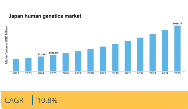 日本のヒト遺伝学市場は、ゲノム技術と個別化医療の進歩により、2025年から2035年にかけて年平均成長率10.8%で成長すると予測されています。