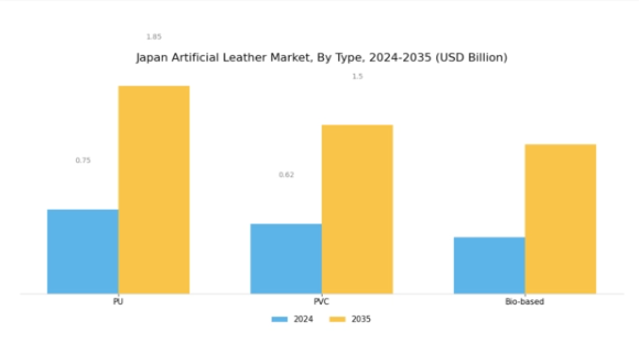 日本人工皮革市場規模予測(2019-2035年、種類別、10億米ドル)
