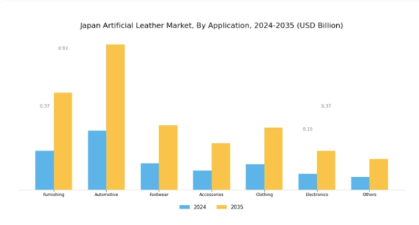 日本人工皮革市場規模推計及び予測、用途別、2019-2035年(10億米ドル)