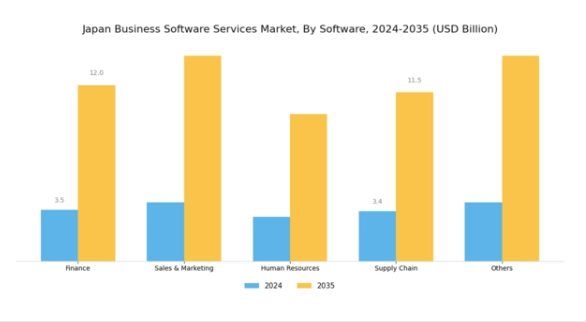日本ビジネスソフトウェアサービス市場は、ソフトウェアセグメントにおける多様な提供内容によって特徴づけられており、このセグメントは、地域の様々な産業における業務効率の向上とデジタルトランスフォーメーションの推進に重要な役割を果たしています。このセグメントは、財務、営業・マーケティング、人事、サプライチェーンなど多岐にわたる領域を包含し、それぞれが市場全体に大きく貢献しています。