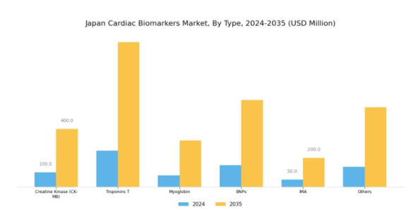 この状況は、日本心臓バイオマーカー市場において機会をもたらしています。なぜなら、増加する心血管疾患に対処するには、正確で信頼性の高い診断方法の必要性が極めて重要だからです。さらに、虚血性アルブミン(IMA)は虚血性心疾患の診断における役割が認知され、診断エコシステムに新たな層を加えています。多様な種類の心臓バイオマーカーは様々な診断ニーズに対応し、呼吸器医療提供の堅牢性を高めています。