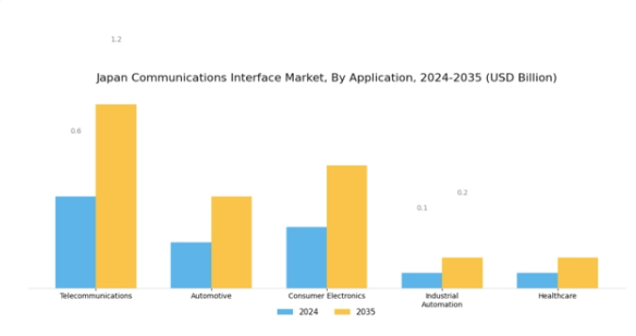 日本の通信インターフェース市場は、電気通信、自動車、民生用電子、産業オートメーション、医療など、様々な産業において極めて重要な役割を担う多様な応用分野を有しております。電気通信分野では、高度な通信インターフェースによりネットワーク効率とユーザー体験が向上し、個人や企業をつなぐ上で重要な役割を果たしております。一方、自動車分野では、これらの技術を活用してよりスマートな車両を実現し、安全機能の強化や自動運転システムの開発を支援しております。