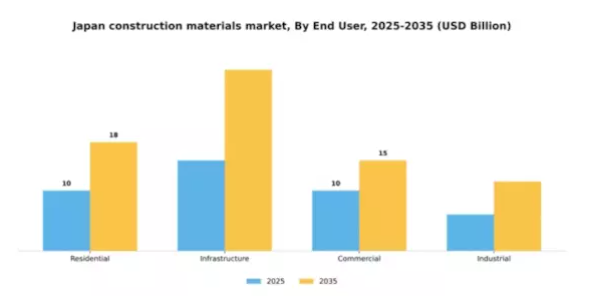 日本の建設資材市場、エンドユーザー別(10億米ドル)