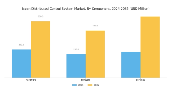 日本の分散制御システム市場は、ハードウェア、ソフトウェア、サービスで構成されるコンポーネントセグメントによってますます牽引されています。これらは、様々な産業における制御システムの全体的な性能と効率性において、総合的に重要な役割を果たしています。
