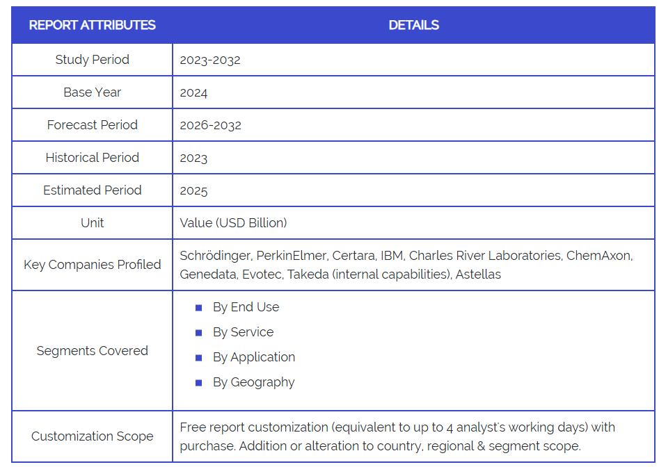 - 主要企業: Schrödinger、PerkinElmer、Certara、IBM、Charles River Laboratories、ChemAxon、Genedata、Evotec、武田薬品工業(社内リソース)、アステラス製薬