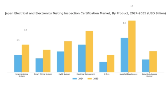 品質保証は、日本の電気電子試験検査認証市場における重要な推進要因であり続けています。産業が製品の信頼性向上と顧客満足度の向上に努める中、品質管理プロセスへの重視がさらに強まっています。安全性が最優先される自動車や航空宇宙などの分野では、厳格な試験と認証が不可欠です。1000億ドル以上の規模を誇る日本の自動車産業は、卓越した品質に対する評価を維持するため、特に厳格な品質保証措置に依存しています。この品質への注力は、規制基準への準拠を確保するだけでなく、消費者の信頼を育むことにもつながります。その結果、企業は品質への取り組みを維持するため、試験・認証サービスへの投資を拡大しており、これが電気電子機器試験・検査・認証市場の成長を牽引しています。品質保証と市場競争力の相互作用が、この産業の将来像を形作る可能性が高いでしょう。