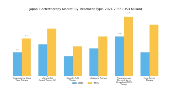 日本の電気療法市場が発展する中、これらの装置の種類における革新と技術的進歩は、市場成長を促進し、治療上の課題に対処し、患者の治療成果を向上させる可能性が高いです。日本における非侵襲的治療オプションへの需要増加に伴い、これらの装置の性能と有効性は、大幅なユーザー基盤を獲得し、市場をさらに推進すると予想されます。
