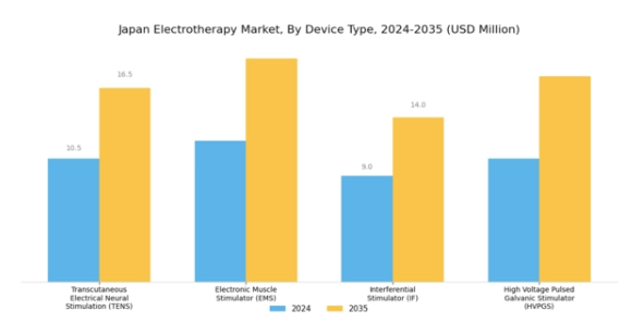 日本における高齢化人口への人口動態の変化は、効果的な疼痛管理ソリューションの需要を促進しています。電気療法は加齢に伴う疾患の治療法として有効な選択肢として認知されつつあり、市場規模の拡大が期待されます。