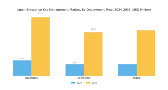 日本のエンタープライズ鍵管理市場、特に展開タイプセグメントでは、企業がデータセキュリティと規制順守をますます優先するにつれ、著しい成長が見られます。このセグメンテーションには主に、クラウドベース、オンプレミス、ハイブリッドの展開が含まれます。各種類は固有のニーズに対応しており、クラウドベースのソリューションは柔軟性と拡張性により注目を集めており、組織はオンプレミスインフラへの大幅な投資なしに鍵を効率的に管理できます。一方、オンプレミス導入は依然として重要であり、特に厳格な規制が課される業界において、セキュリティシステムや機密データに対する厳格な管理を必要とする企業から支持されています。