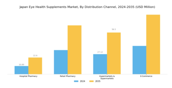 日本における目の健康サプリメント市場、流通チャネル別(百万米ドル)
