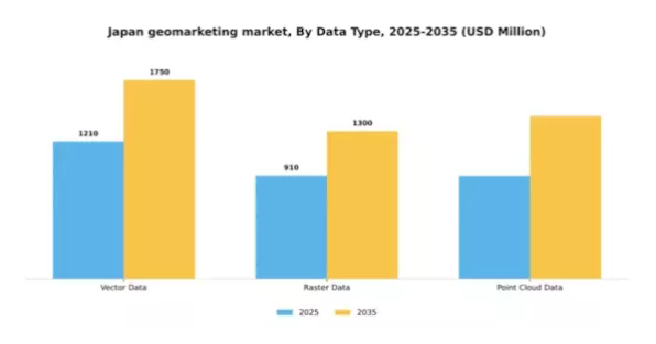 日本のジオマーケティング市場におけるデータタイプセグメントは、ベクターデータ、ラスターデータ、点群データの3つの主要な価値で構成されています。このうちベクターデータは最大のシェアを占め、精密な地理的表現を提供する分野での優位性を示しています。一方、ラスターデータは様々な用途における詳細な画像と分析の需要増加により、急速な成長が注目されています。点群データは重要性を持ちながらも、シェアと成長可能性の面で他の2つに後れを取っています。この成長傾向は、技術進歩と産業横断的な地理空間分析への依存度上昇に牽引され、ジオマーケティング環境の変化を反映しています。ラスターデータは、高解像度画像を活用した意思決定の高度化を求める企業需要により、最も急速な成長を遂げております。一方、ベクターデータは、マッピングやモデリングにおける汎用性から、依然として主要な地位を維持しております。3Dスキャンやイメージング技術の革新に後押しされた点群データの収集・処理は、確立されたデータ種類に比べ普及ペースは緩やかではありますが、当該セグメントに確実に貢献しております。