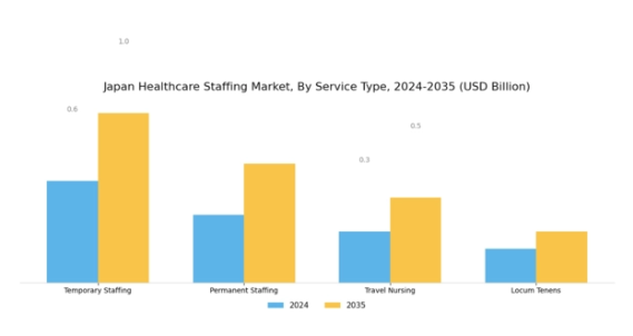臨時派遣は、季節的なピークや患者急増に対応する医療提供者の即時的かつ変動するニーズに応える重要なサービス形態として日本において台頭しています。これは病院や診療所に柔軟性を提供すると同時に、人材確保のギャップ解消にも寄与します。