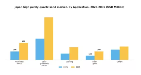 日本の高純度石英砂市場は用途別で多様性が顕著であり、主要な貢献分野としてマイクロエレクトロニクス、太陽電池用ポリシリコン、照明、光ファイバー、その他が挙げられます。現在、高純度材料を必要とする電子機器の需要拡大により、マイクロエレクトロニクスが最大のシェアを占めています。太陽光発電用ポリシリコンは、再生可能エネルギーソリューションへの推進力の高まりを背景に、微細電子工学に次ぐ成長を遂げております。照明および光ファイバー分野も堅調な成長を見せております。成長傾向を見ると、技術進歩と太陽光エネルギー導入促進のための政府支援策により、太陽電池用ポリシリコン分野で著しい急成長が示されています。一方、マイクロエレクトロニクス分野は安定しているものの、民生用電子機器の革新において依然として極めて重要です。光ファイバーおよび照明分野における新興用途は、様々な産業における継続的な近代化の取り組みを反映しており、市場にダイナミックな状況を生み出しています。