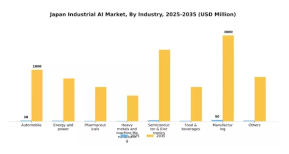 日本の産業用AI市場における業界セグメント別の市場シェア分布を見ると、自動車セクターが大きな割合を占め、最大のセグメントとなっています。その他の注目セグメントには、エネルギー・電力、医薬品、半導体・電子があり、それぞれが市場全体の動向に貢献しています。重金属・機械製造、食品・飲料も重要な役割を果たしていますが、主要セグメントと比較すると規模は小さいままです。日本産業用AI市場の成長傾向は堅調な拡大を示しており、特に医薬品分野は現在最も成長が速いセグメントとして認識されています。この成長の要因には、医療プロセスにおける自動化需要の増加、業務効率向上の必要性、医薬品開発プロセスの複雑化などが挙げられます。自動車産業はスマート製造技術の進歩と生産ラインへのAI技術統合に支えられ、引き続き好調を維持しており、市場の成長軌道をさらに加速させています。