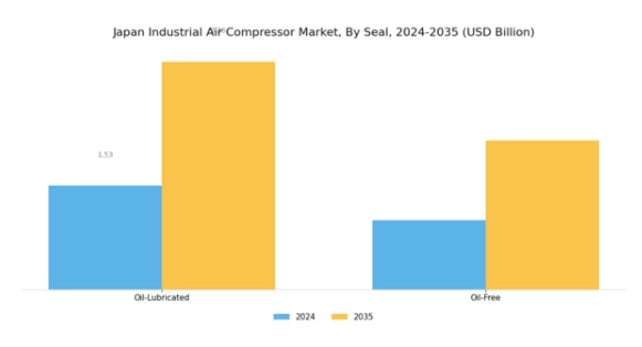 日本の産業用空気圧縮機市場は、生産性とエネルギー効率を向上させる革新的技術への注目が高まっていることが特徴です。自動化の進展と持続可能な実践の必要性から、ユーザーが信頼性と効率性を兼ね備えた空気圧縮ソリューションを求める中、両セグメントとも大幅な成長が見込まれます。さらに、日本国内におけるインフラプロジェクトへの投資増加は、多様な産業用途の要求に応えるため、油潤滑式およびオイルフリー式コンプレッサー双方の需要を後押しする可能性が高いです。全体として、シールセグメントは日本の産業成長と技術進歩を支える上で重要な役割を果たしています。