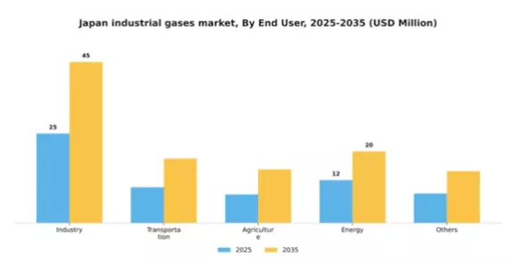 産業セクターはエンドユーザー分野における主流であり、主に製造工程、溶接、金属加工における広範な利用に支えられています。この分野は、ガス使用を最適化し運用効率を向上させる、確立されたインフラと技術の恩恵を受けています。一方、運輸セクターは、持続可能な実践への移行を示すガス燃料車両などの革新的な応用により台頭しつつあります。この傾向は政府の奨励策と高まる環境意識に支えられており、運輸企業が競争力のあるガスソリューションを導入することを可能にしております。産業分野がガス需要の基盤であり続ける一方で、運輸分野は急速に勢いを増しており、日本の産業用ガス市場における進化する状況を示しております。