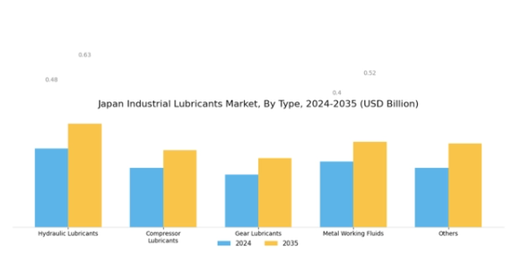 日本の産業用潤滑油市場、種類別(10億米ドル)